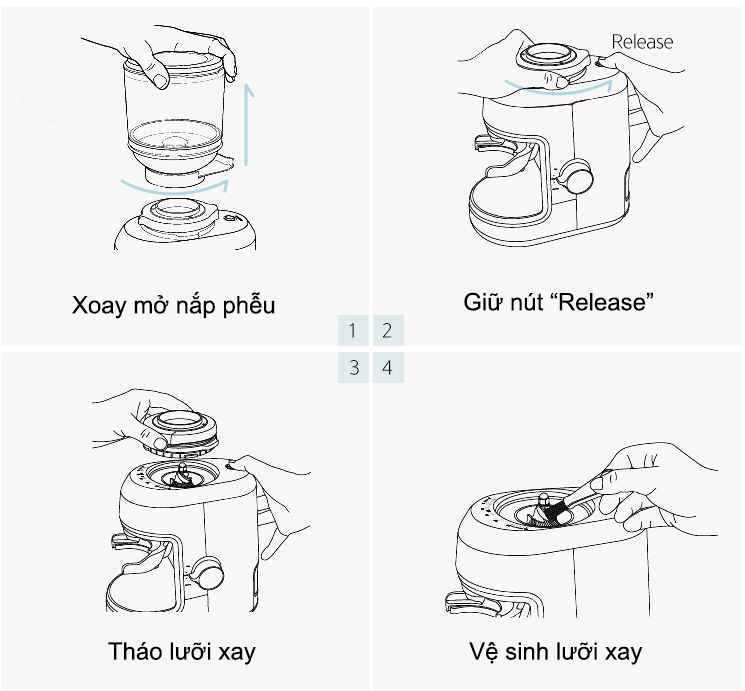 Cách tháo lắp và vệ sinh Máy xay cà phê Welhome ZD17 :