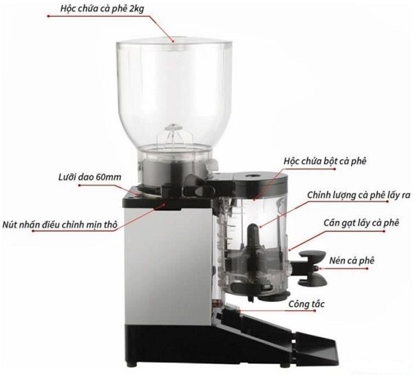 Hệ thống tự động ngắt giúp đảm bảo máy xay cà phê không bị hoạt động quá tải, nhằm kéo dài tuổi thọ cho máy. Ngăn đựng cà phê hạt phía trên đỉnh máy có sức chứa tới 2kg hạt, giúp bạn không phải đổ hạt cà phê vào nhiều lần. Ngăn chứa hạt cà phê và bột cà phê thành phẩm được làm bằng nhựa trong suốt giúp bạn quan sát dễ dàng.