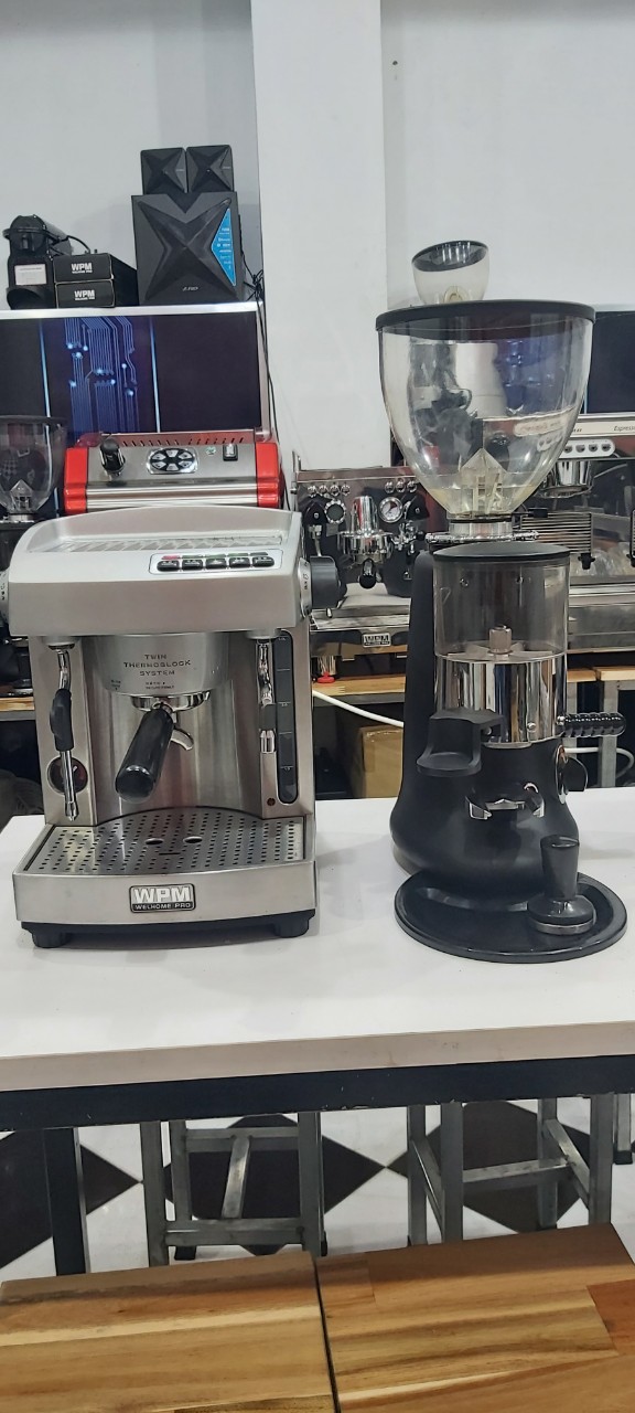 Thanh lý máy pha cafe capuchino WELHOME KD 210 và máy xay HC 600 giá rẻ.