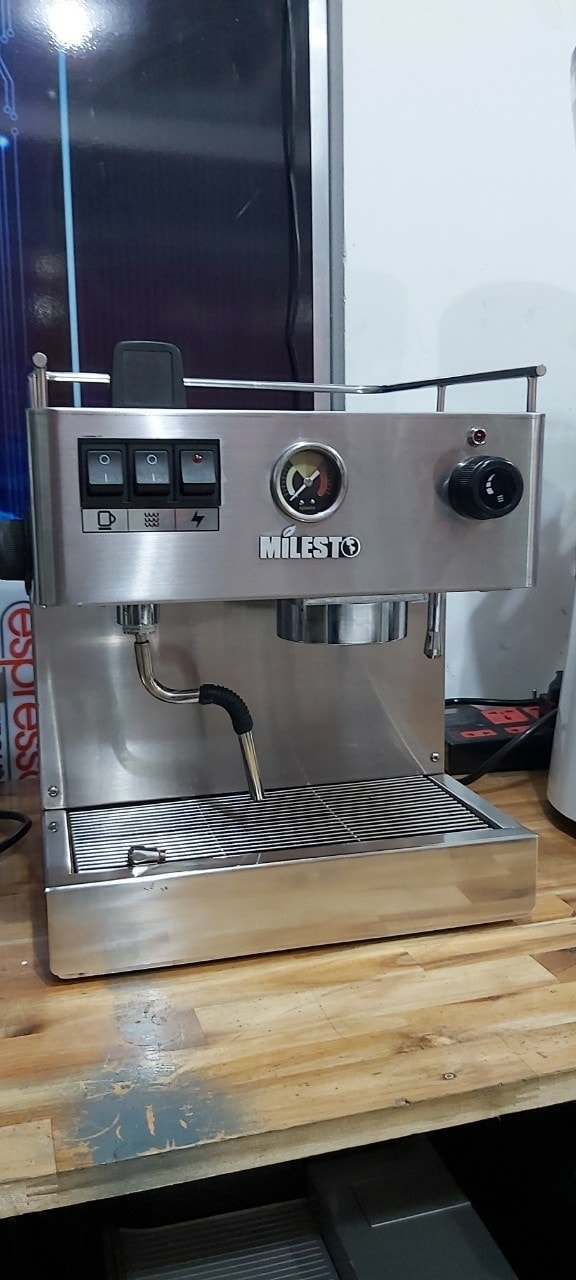 - Máy pha cafe Milesto thuộc dòng máy pha cafe phân khúc bình dân với giá thành hợp lý khách mới mở quán cafe.