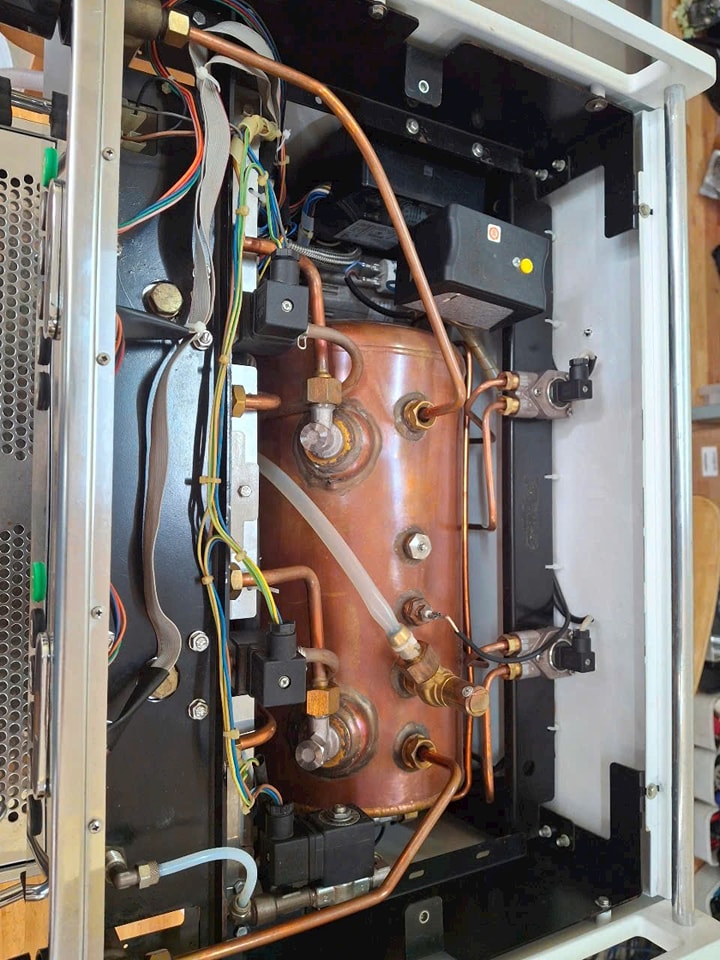 - Máy sử dụng các vật liệu chất lượng cao như thép không gỉ AISI 304 cho thân máy và nồi hơi bằng đồng nguyên khối, đảm bảo độ bền và hiệu suất ổn định.