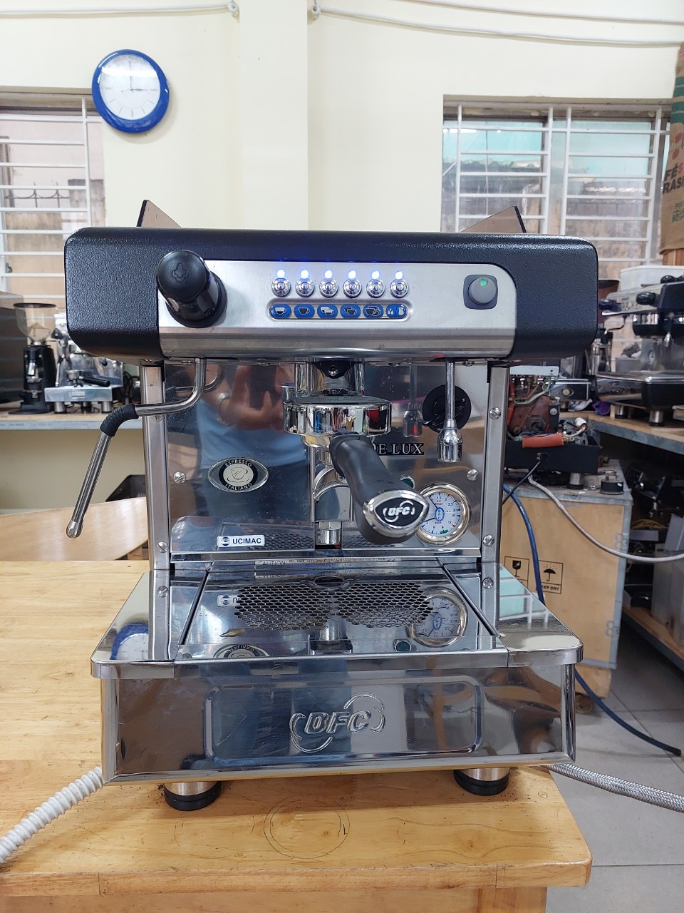 Hình ảnh máy pha cafe chuyên nghiệp cũ BFC Delux nhập khẩu Ý chất lượng bền có tiếng.