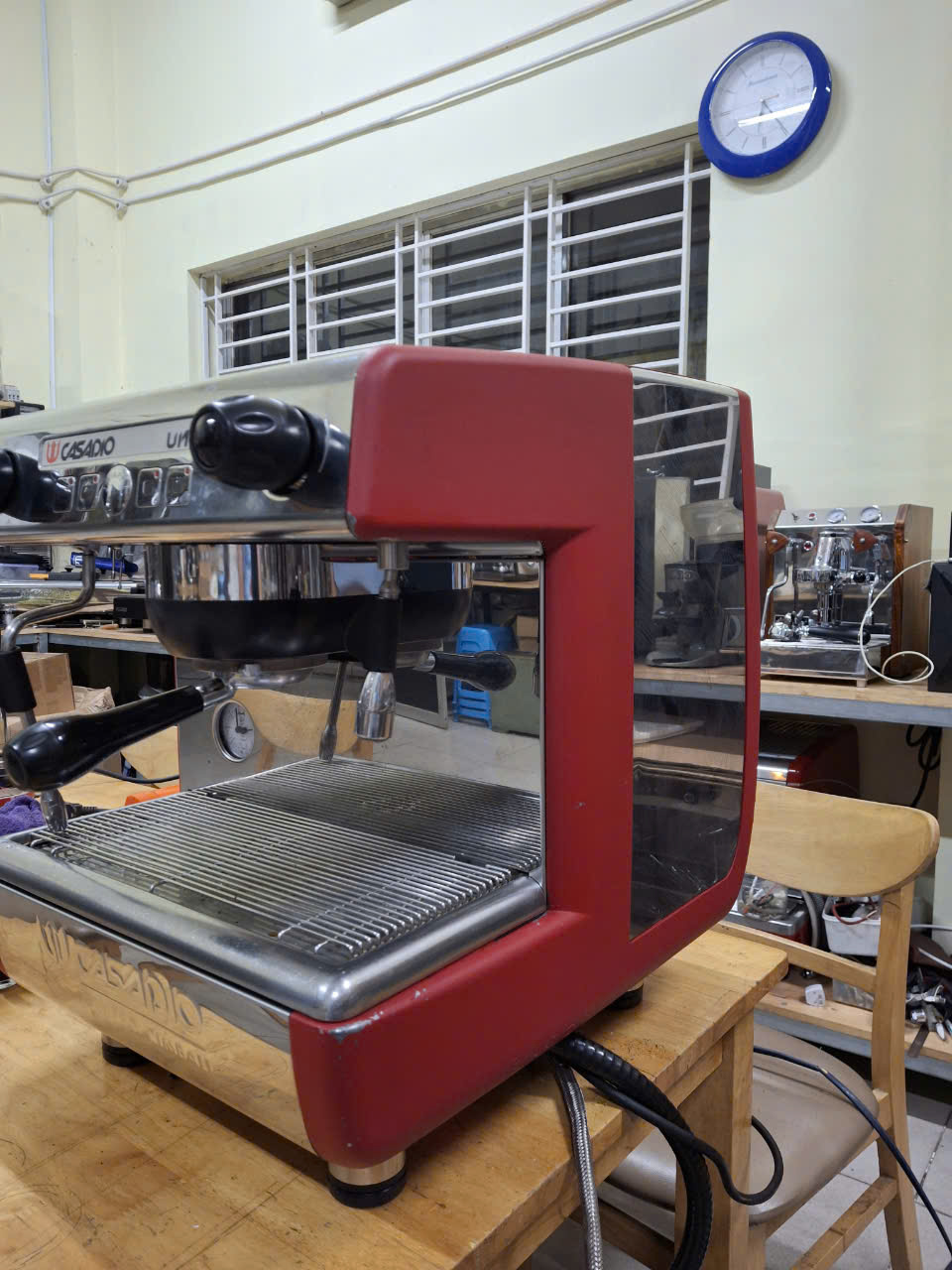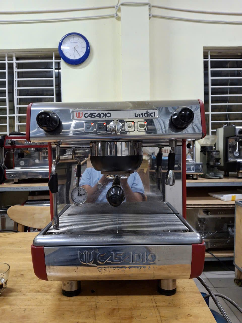 Thanh lý máy pha cà phê Casadio Undici màu đỏ nổi bật.