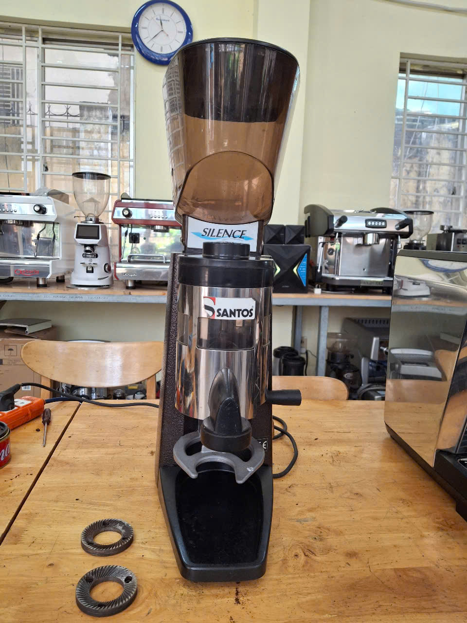 💥 Máy xay cà phê Santos Silence 1A – hàng nhập khẩu Pháp chính hãng, máy hoạt động êm ái – độ bền cao, phù hợp quán cafe, take-away hoặc rang xay cá nhân.